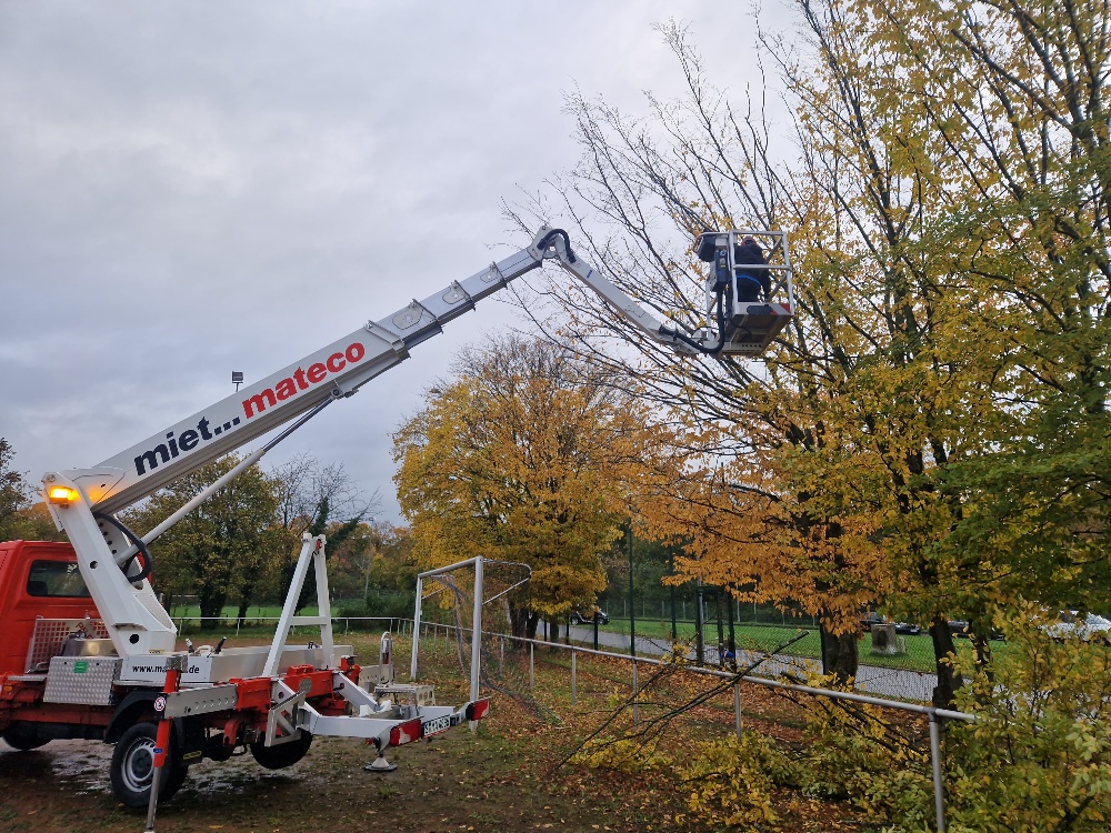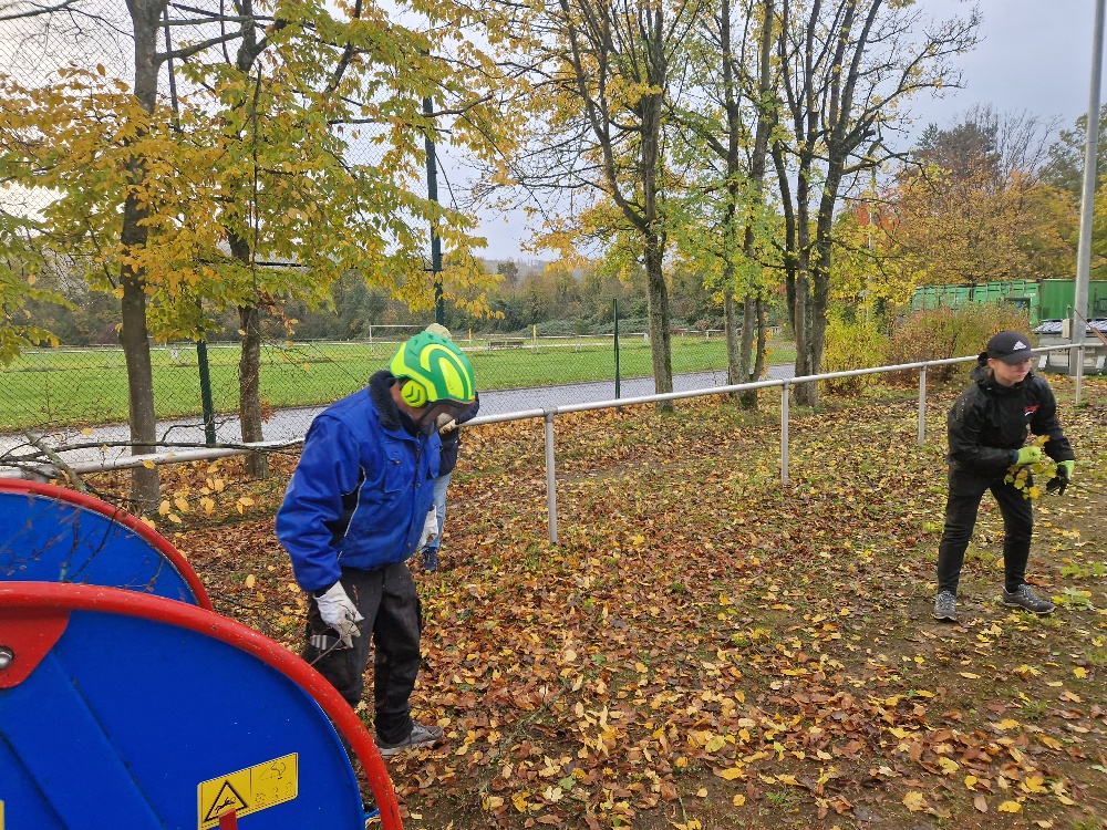 Es gab viele dunkle Flecken auf dem Hartplatz, da die hochgewachsenen Bäume das Flutlicht verdeckt haben. Zudem blieb so mancher hohe Ball entlang der Seitenlinie in den Ästen hängen. Es bestand also Handlungsbedarf. Wie so häufig waren es die selben Gesichter, die sich am Samstag Morgen im strömenden Regen im Baggerloch trafen, um hier Abhilfe zu schaffen. Nach 4 Stunden war der Job erledigt. Für die anstehende Wintersaison, ist der erste Schritt getan, um hier wieder ein spielfähiges Terrain zu schaffen. Am nächsten Wochenende kommt dann die neue Sandauflage. Allen, die sich eingebracht haben ein herzliches Dankeschön, vor allem auch an Sven Huber GaLaBau, für die Bereitstellung der notwendigen Geräte und Maschinen.