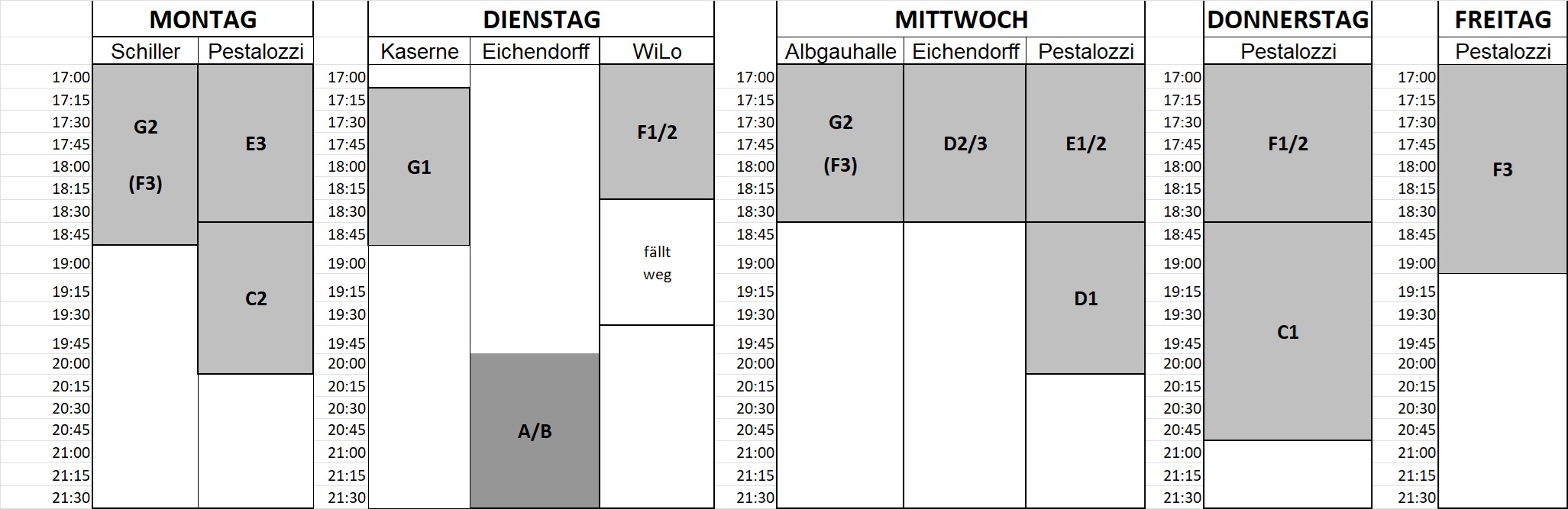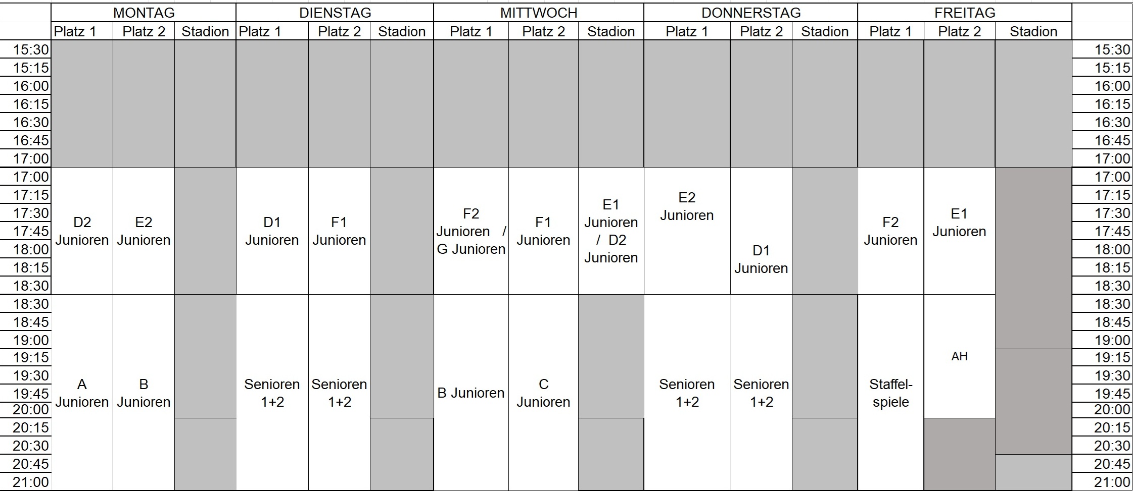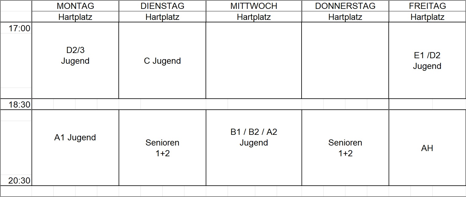 Training Rasenplätze Saison 2025/2026 _____________________ Hartplatzbelegung Winter 2025/2026 _____________________ Hallenbelegung 2025/2026