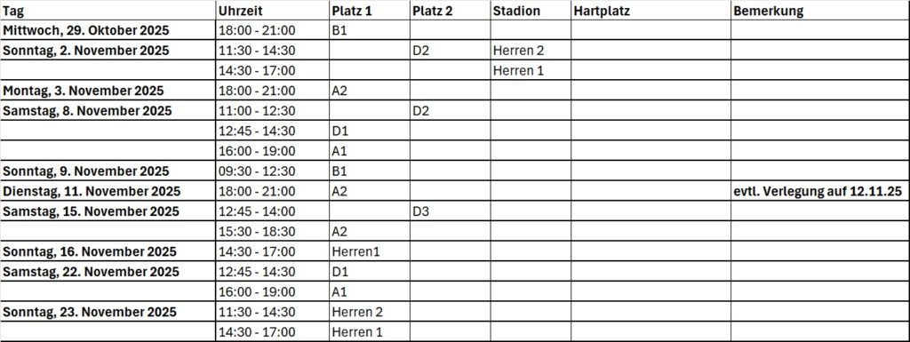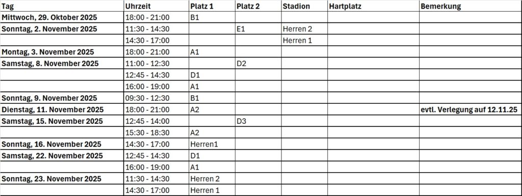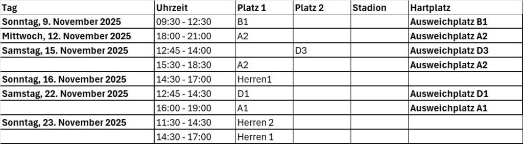 Platzzuweisung Spieltage